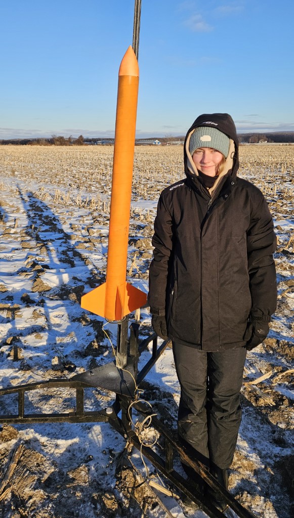Anne Sophie S-B. got her CAR (Canadian Associoation of Rocketry) L3 certification on her custom "TDC2" rocket on an Aerotech J340 MS motor at our St. Albans field on November 15, 2025.