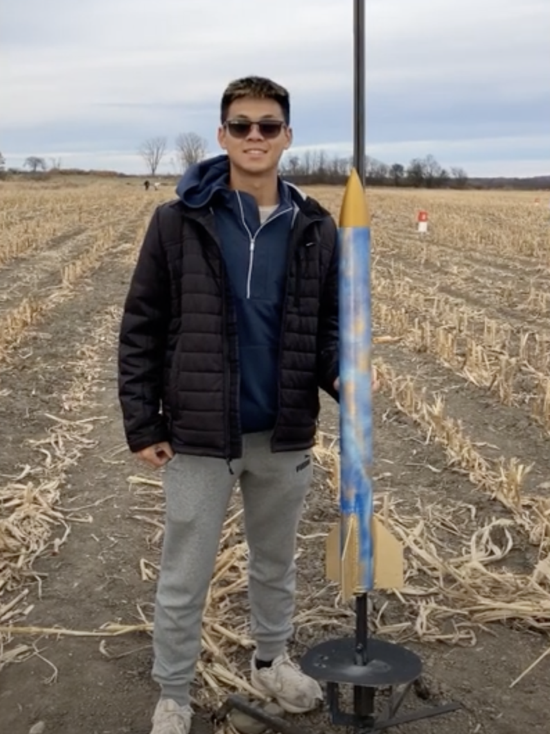 Israel C. got his L1 certification with his custom "The Cruz Missile" rocket on an Aerotech H169 Super White Lightning motor at our St. Albans field on May. 4, 2025. Video is HERE.