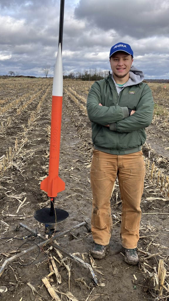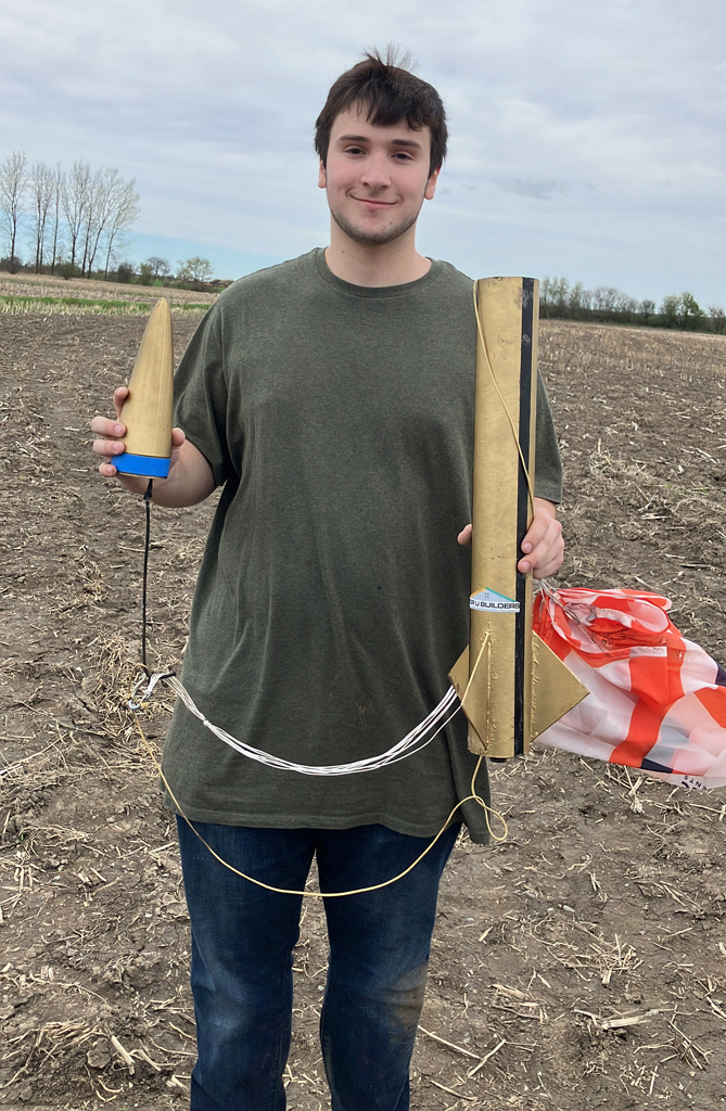 Daniel S. got his L1 certification with his Scarborough rocket on an Aerotech H135 White Lightning motor at our St. Albans field on May 19, 2024. Launch video is HERE