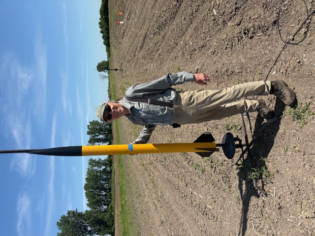 Stewart L. got his L2 certification with his LOC I-Roc rocket on a CTI J357 Blue Streak motor at our St. Albans field on May. 26, 2025. Video is HERE.