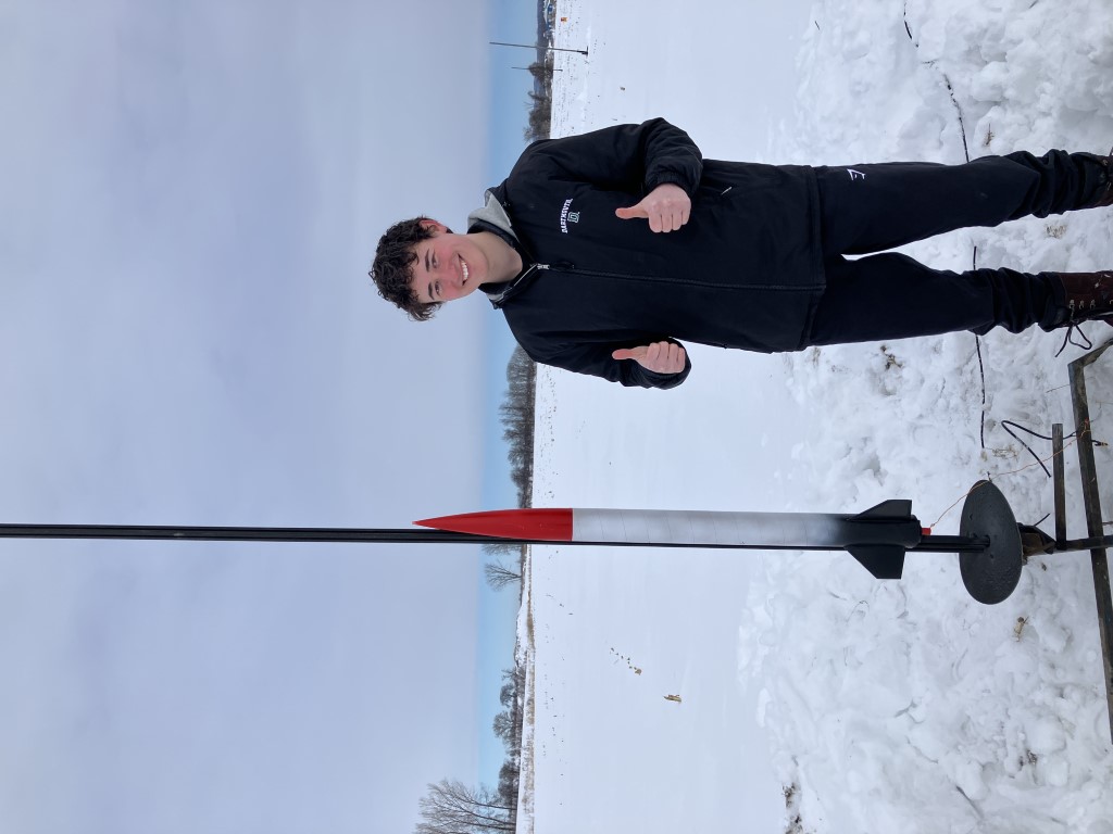Edward (Teddy) C. got his L1 certification with his custom Canadian Excellence rocket on an Aerotech H219T Blue Thunder DMS motor at our St. Albans field on March 16, 2024. Launch video is HERE