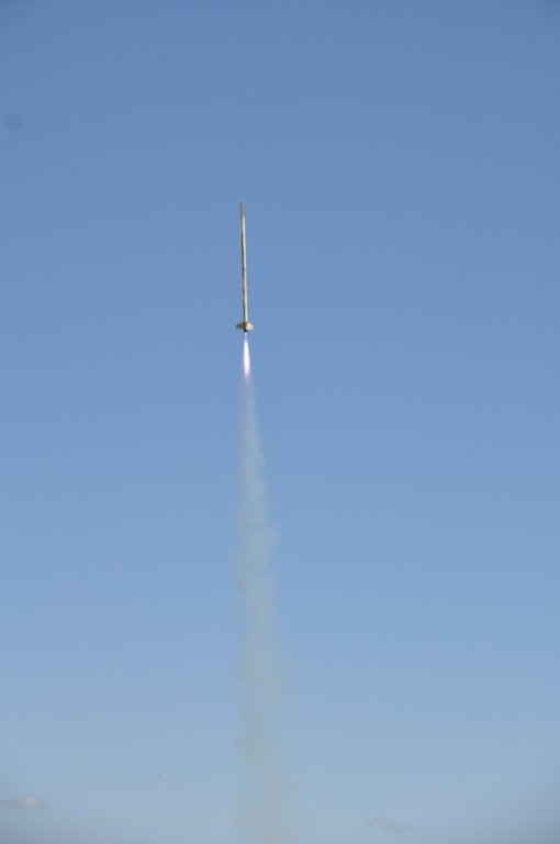 A CTI J293 Blue Streak powered a custom made Scratch One 54 to an altitude of 5861 feet (actual). This was a minimum diameter rocket with a prebuilt fincan so the build was relatively easy, albeit the rocket was very tall (84 inches). The RRC2-mini did an excellent job and brought the rocket down relatively closely.