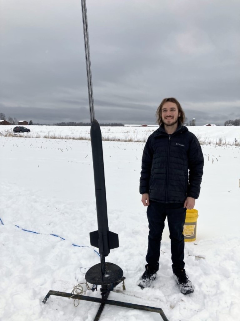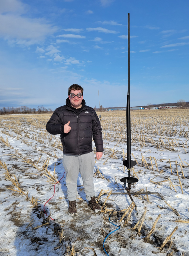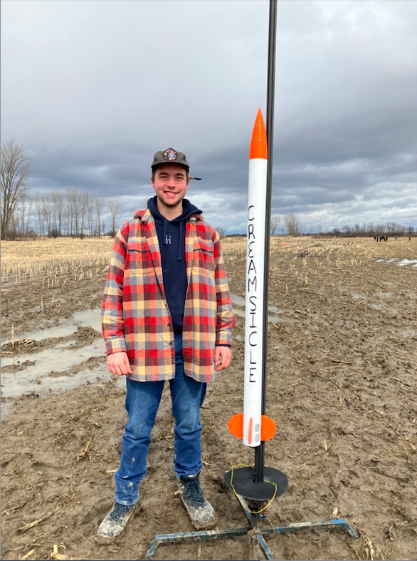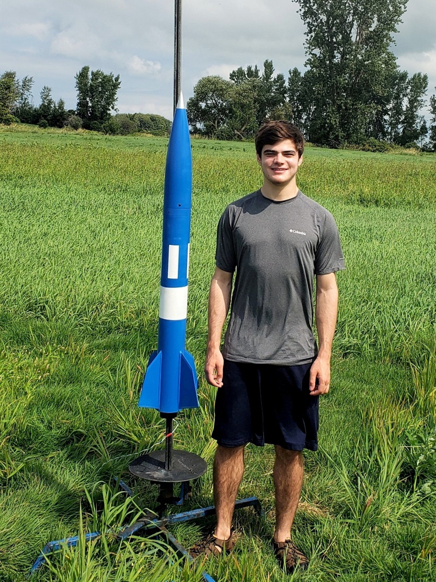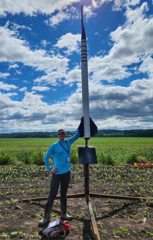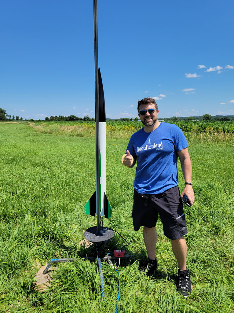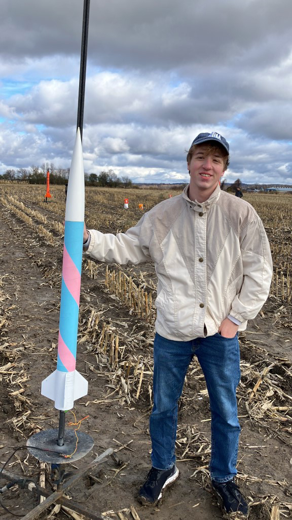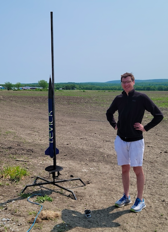 Daniel S. got his L1 certification with his Scarborough rocket on an Aerotech H135 White Lightning motor at our St. Albans field on May 19, 2024. Launch video is HERE