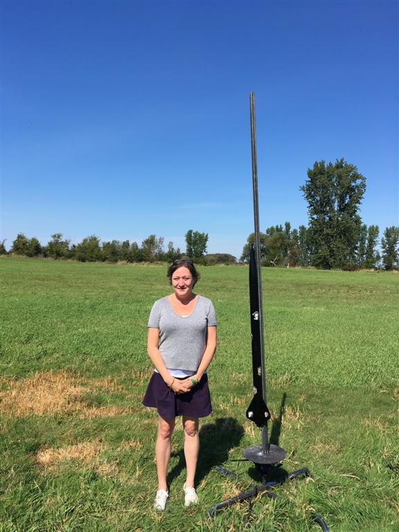 Clare S. got her Level 1 certification with her Loc Hi-Tech named "Pip Boy" using a CTI I303 Blue Streak motor at our St. Albans field on August 18, 2017.