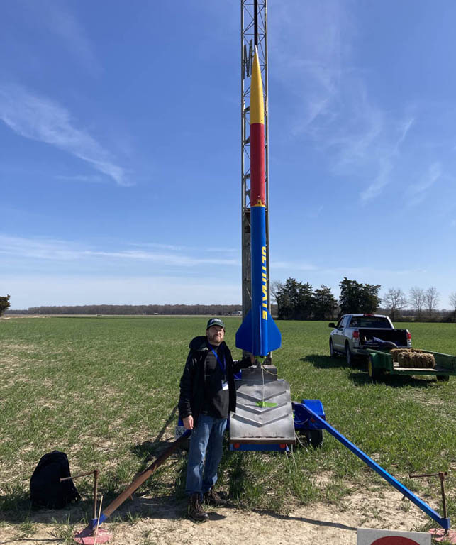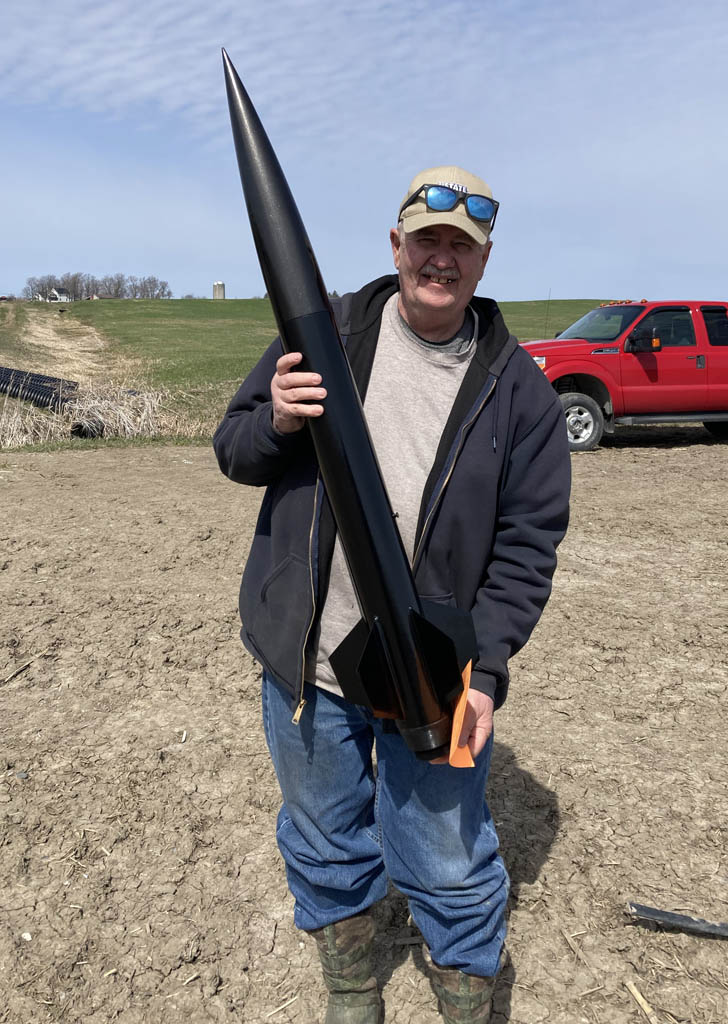 James S. got his L3 certification with his 51 lb, 6 in. dia. 11' tall Ultimate Wildman, on a CTI M1810 Redline motor at Red Glare on Apr. 2, 2022. Flight video is HERE. Liftoff Photo is HERE. Outline of his certification plan is HERE.