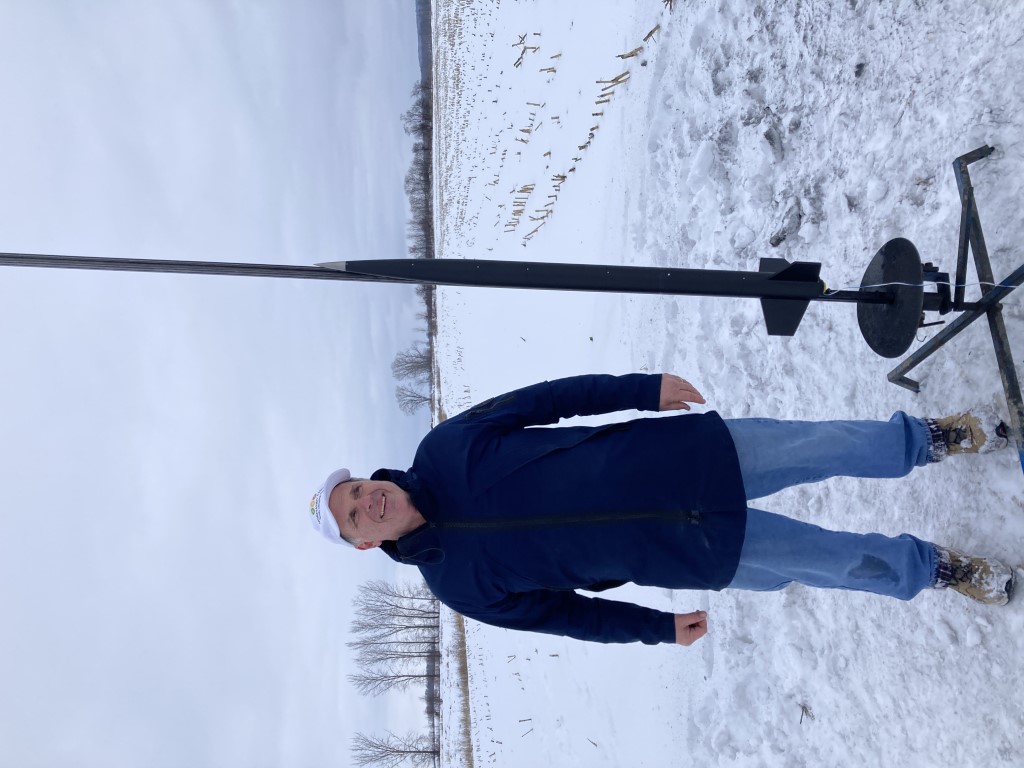 Andrew M. got his L1 certification with his Apogee Fresno rocket on a CTI H110 White motor at our St. Albans field on Dec 22, 2024.