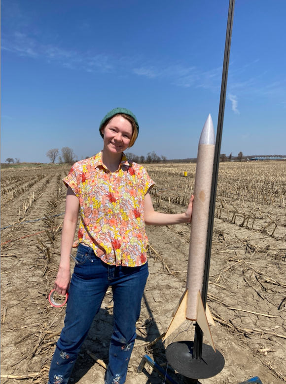 Maggie O. got her L1 certification with her custom Hot To Go rocket on a CTI H135 White motor at our St. Albans field on April 24, 2024. Launch video is HERE