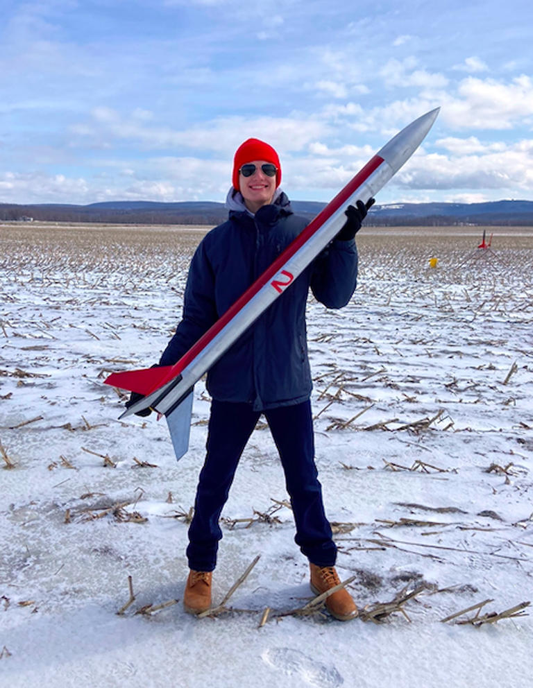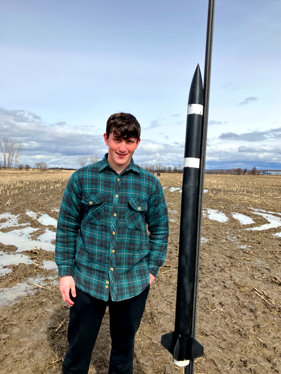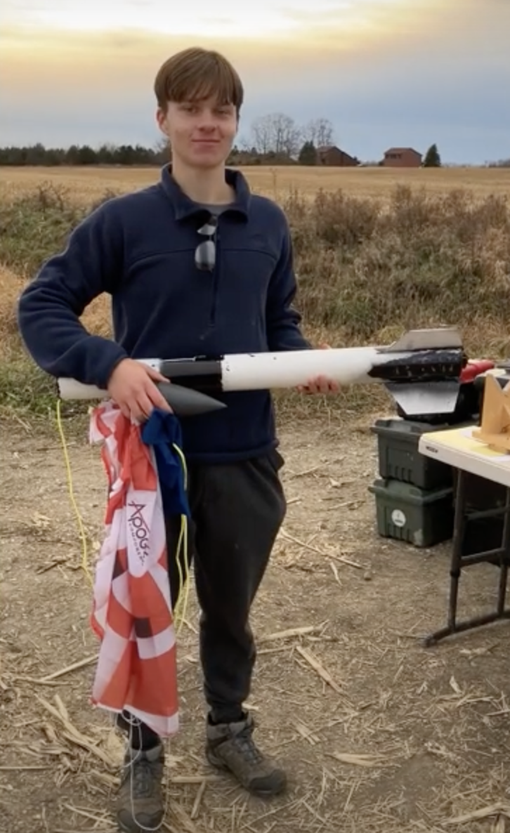 Edward (Teddy) C. got his L1 certification with his custom Canadian Excellence rocket on an Aerotech H219T Blue Thunder DMS motor at our St. Albans field on March 16, 2024. Launch video is HERE