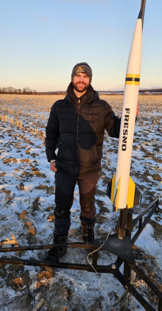 Anne Sophie S-B. got her CAR (Canadian Associoation of Rocketry) L3 certification on her custom "TDC2" rocket on an Aerotech J340 MS motor at our St. Albans field on November 15, 2025.