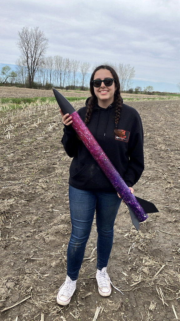 Annika L. got her L1 certification with her custom "Purple Sausage" rocket on an Aerotech H182 Red motor at our St. Albans field on May. 4, 2025. Video is HERE.