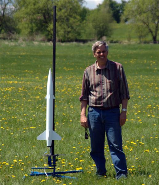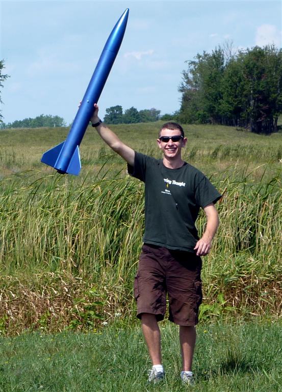Jeff O. completed his Level 2 certification with his 4X upscaled Estes Alpha and a ATJ275 White Lightning motor April 18, 2009.