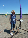 Molly H. got her Level 1 certification with her scratch-built Crayon rocket dubbed "Purple Haze" using a CTI H123 Skidmark motor at URRF on June 28, 2014. Flight photo is HERE