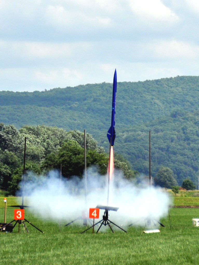Sean D. got his L1 certification with his custom Gummett rocket on a CTI H200 Blue Streak motor at our St. Albans field on April 24, 2024. Launch video is HERE